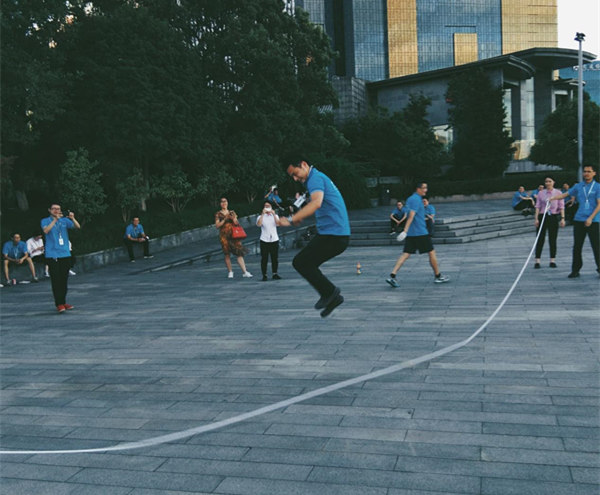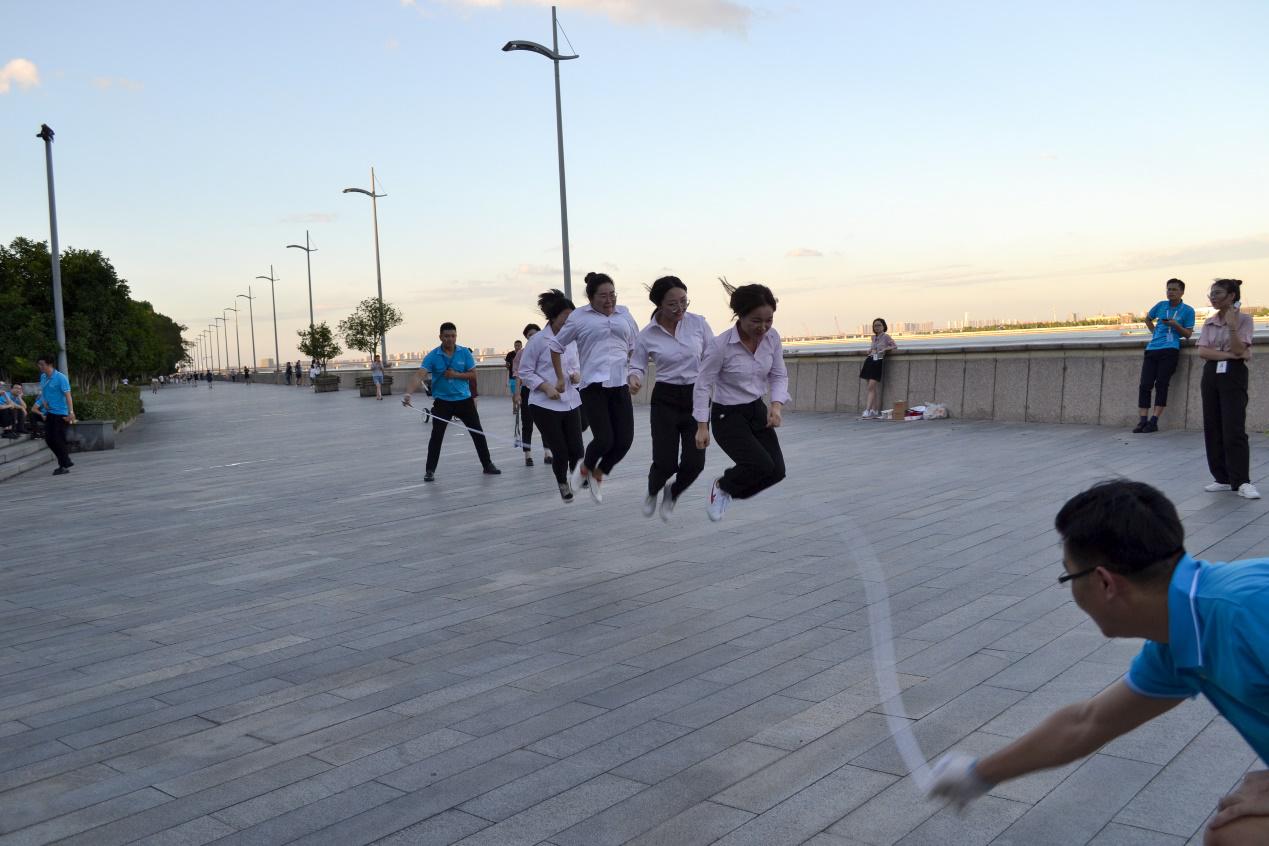五人一組比賽制,共分成三組,跳大繩不僅是甩繩大漢與小姑娘們的配合,也是五人之間的考核。本來蹦不高的女孩子,也一個(gè)勁兒地提臀抬腳,怕拌了繩,影響團(tuán)隊(duì)成績,體力不支的情況下也咬牙堅(jiān)持到了最后,這就是團(tuán)隊(duì)的力量!創(chuàng)綠家的姑娘,不論在工作上還是精力上,各個(gè)巾幗不讓須眉。最終第二組姑娘以四十幾不間斷數(shù)量取得了本次跳繩比賽的***組。